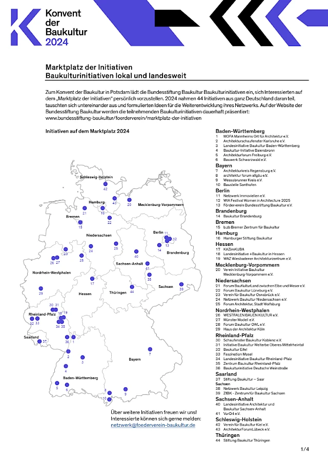 - Sichtbarkeit erhöhen Die digitale Plattform der Bundesstiftung wird zur zentralen Anlaufstelle für alle Baukulturinitiativen in Deutschland. Auch WESTFALEN BAUT KULTUR ist dort gelistet. Eine wachsende Datenbank soll künftig nicht nur informieren, sondern auch Vernetzung erleichtern.