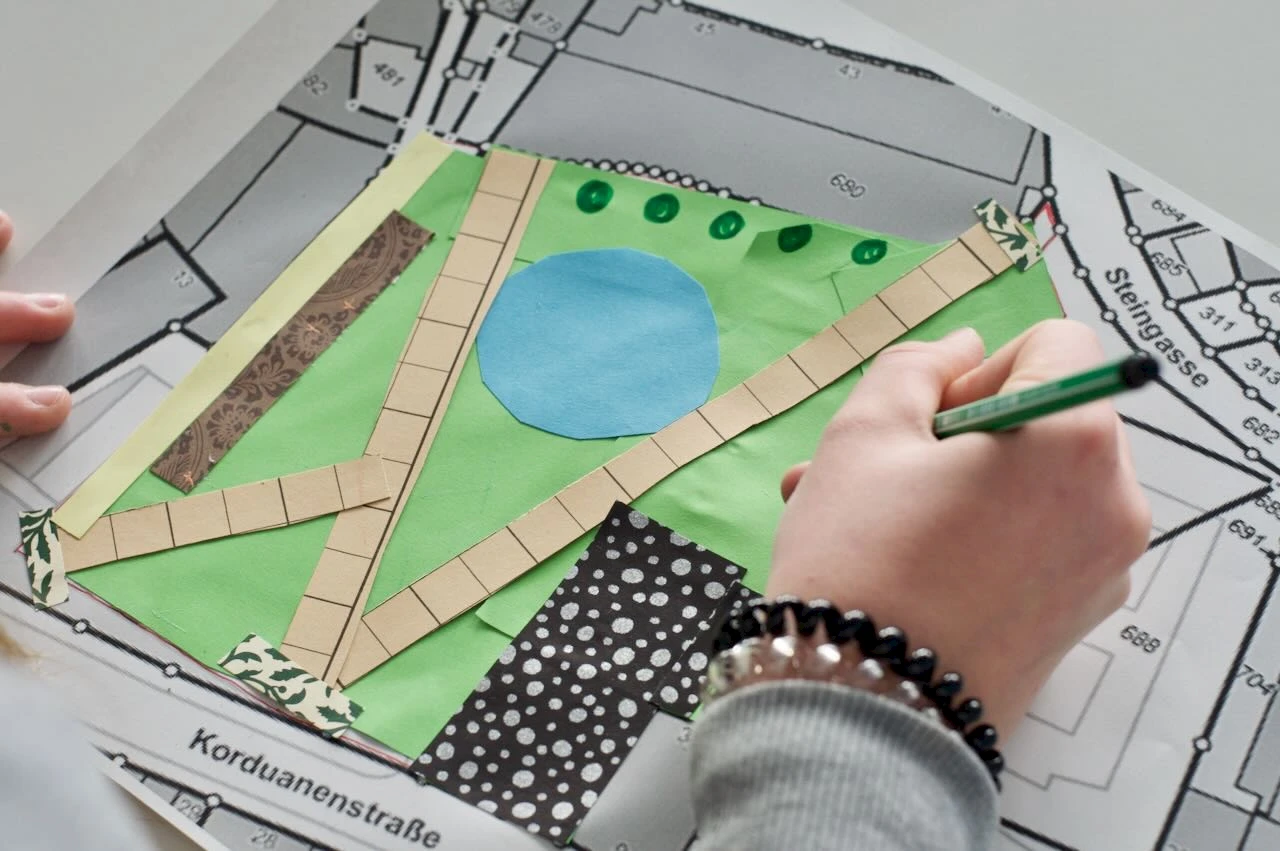 Heike Schwalm ist Architektin, Kulturmanagerin und Vorstandsmitglied von WESTFALEN BAUEN KULTUR. Sie setzt sich dafür ein, dass baukulturelle Bildung vielfältiger, zugänglicher und wirksamer wird – nicht zuletzt durch kreative Ausdrucksformen. In ihren Workshops im Rahmen von »JAS – Jugend Architektur Stadt« entstehen aus Papier, Bildern und Ideen ganz eigene Zukunftsentwürfe. Jugendliche fügen Farben und Formen zu Collagen zusammen und bringen ihre Sicht auf Räume ins Bild. So wird aus dem Nachdenken über Architektur ein konkreter, gestalterischer Zugang – anschaulich, eigenständig und mit Haltung.