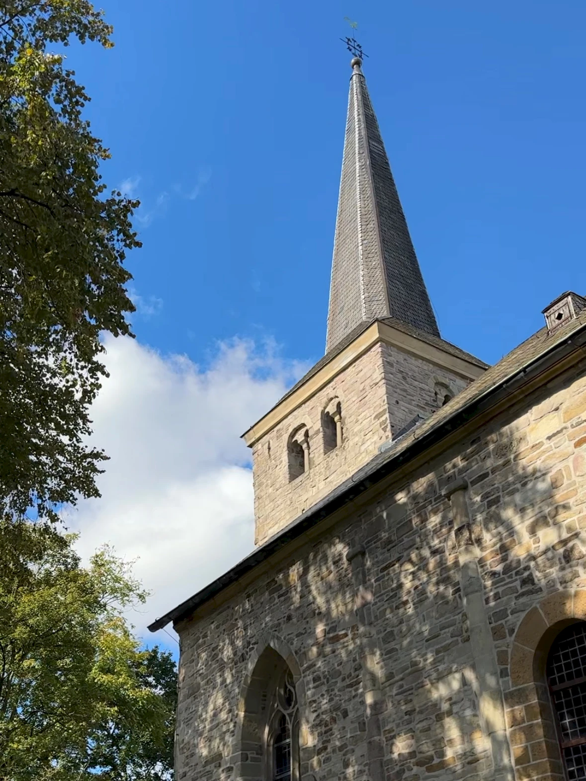 Stiepel, 5. Oktober 2024. Stiepel liegt im Süden Bochums und grenzt direkt an die Ruhr. Mit einer Fläche von 12,46 Quadratkilometern und deutlichen Höhenunterschieden – von 70 Metern an der Ruhr bis zu 196 Metern am höchsten Punkt – ist der Stadtteil von einer abwechslungsreichen Topografie geprägt. Die Dorfkirche selbst erhebt sich auf etwa 110 Metern über dem Meeresspiegel.