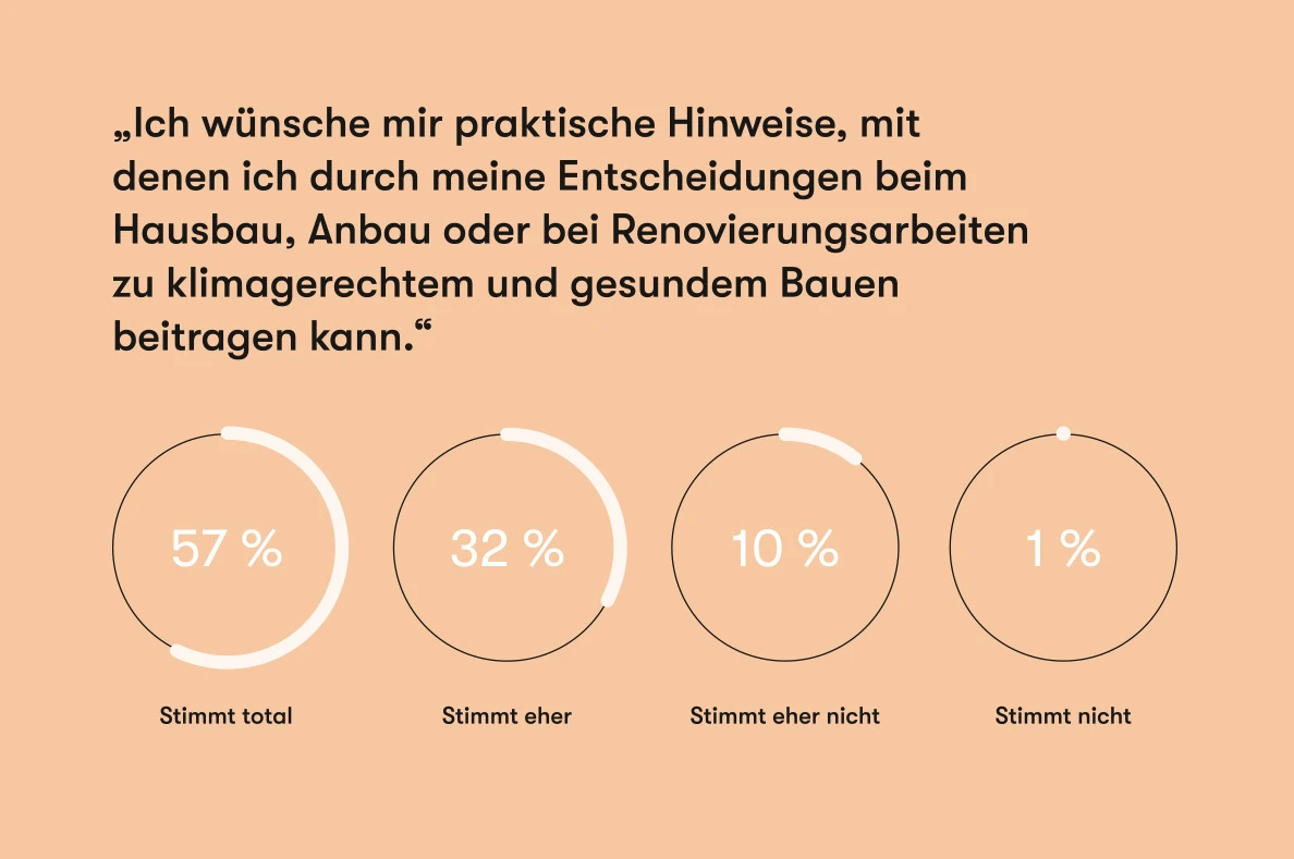 - Die Hauptinformationsquellen der Befragten zum Thema Bauen sind die Beratung durch Fachleute, gefolgt von der Fachpresse und den sozialen Medien.