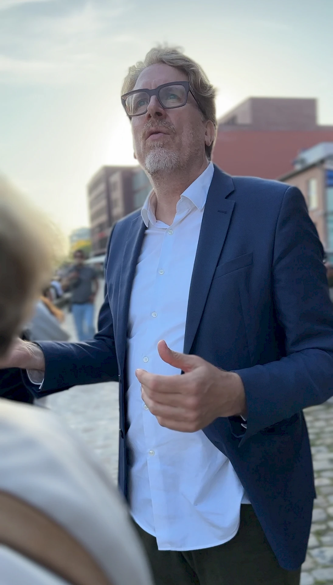 Der erste Vorstitzende von WESTFALEN BAUEN KULTUR, Andreas Heupel, hat zum ersten WEST:WALK an den Hafen in Münster eingeladen. Dabei ging es nicht um nostalgische Rückblicke oder das Bild einer vermeintlich besseren Vergangenheit. Vielmehr stand ein Stück Heimat im Fokus, das neu entdeckt werden wollte. Kritisch, liebevoll und aus unmittelbarer Nähe, als Spaziergang und nicht als Vortrag, lautete das Motto.