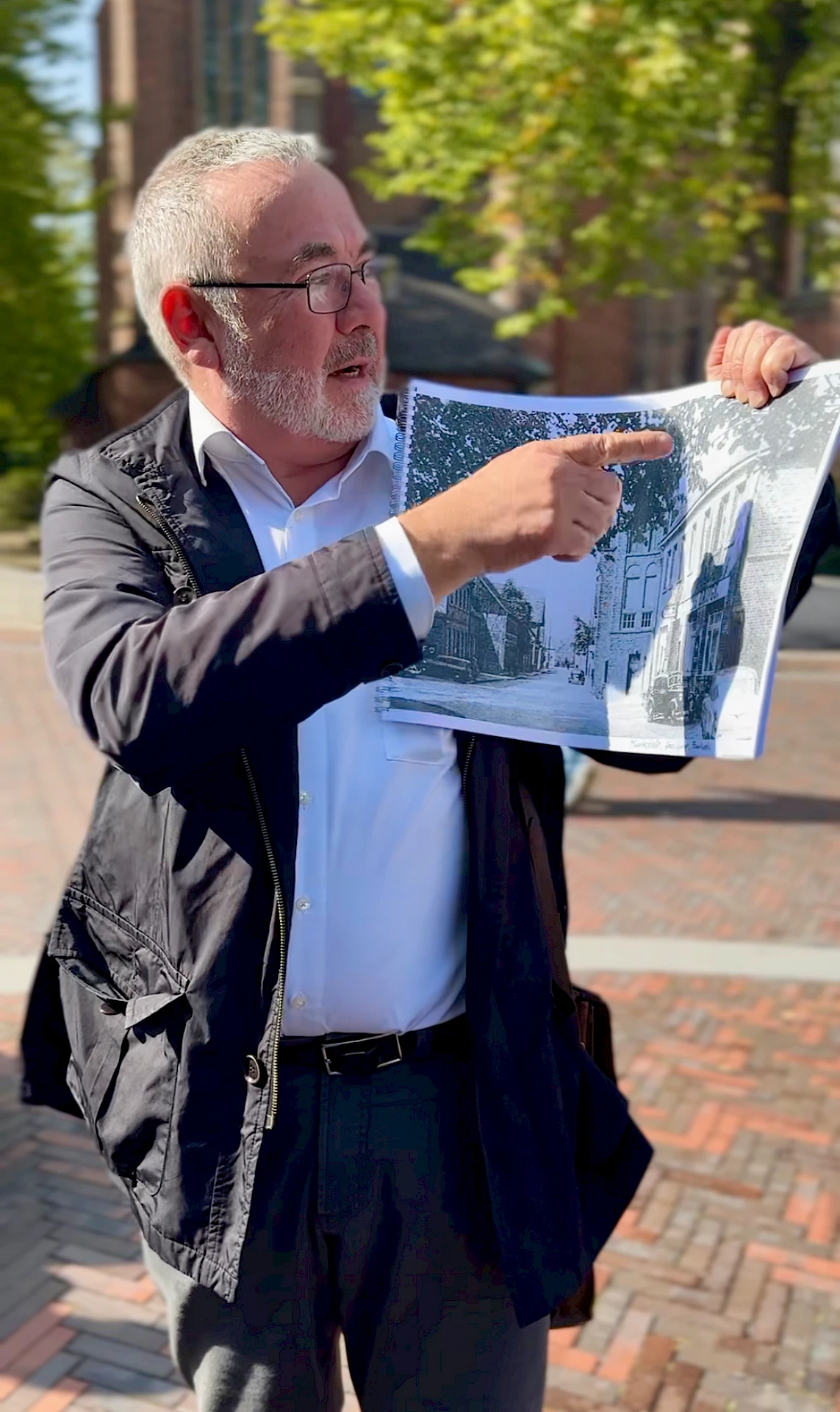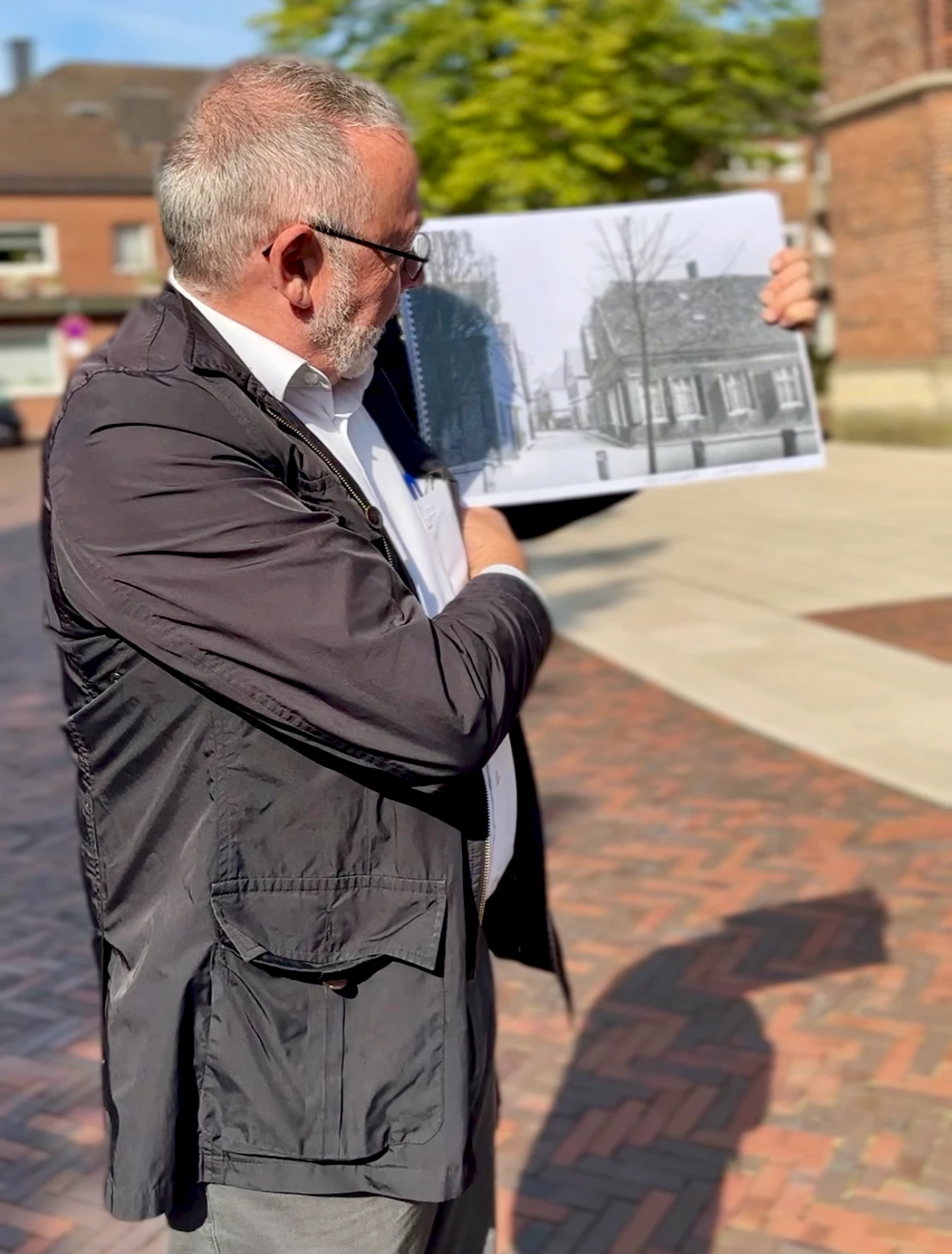 14. September 2024, Senden. Der mehrfach ausgezeichnete Architekt Eckhard Scholz, Mitglied von kommunalen Gestaltungsräten und Gründungsmtglied im Verein WESTFALEN BAUEN KULTUR, hat zu einem Spaziergang der besonderen Art eingeladen: „Entdecke die baulichen Schichten des Sendener Ortskerns“ – ein Thema, das den flüchtigen Blick auf das Gewohnte mit einer tiefgehenden Auseinandersetzung mit Geschichte und Architektur konfrontierte. Scholz, der in Senden lebt, verstand es, den Spaziergang zu einem lebendigen Erlebnis zu machen. Mit alten Fotos, Karten und Dokumenten nahm er die Teilnehmenden mit auf eine Reise durch die bauliche Vergangenheit des Ortes, der vor allem seit den 60er Jahren einen starken Wandel durchlebt hat. Der Fokus lag dabei nicht nur auf der baulichen Gestaltung, sondern auch auf der Sozialgeschichte, die untrennbar mit der Architektur verbunden ist. Denn: „Zur Architekturgeschichte gehört immer auch die Sozialgeschichte“, sagt Scholz.