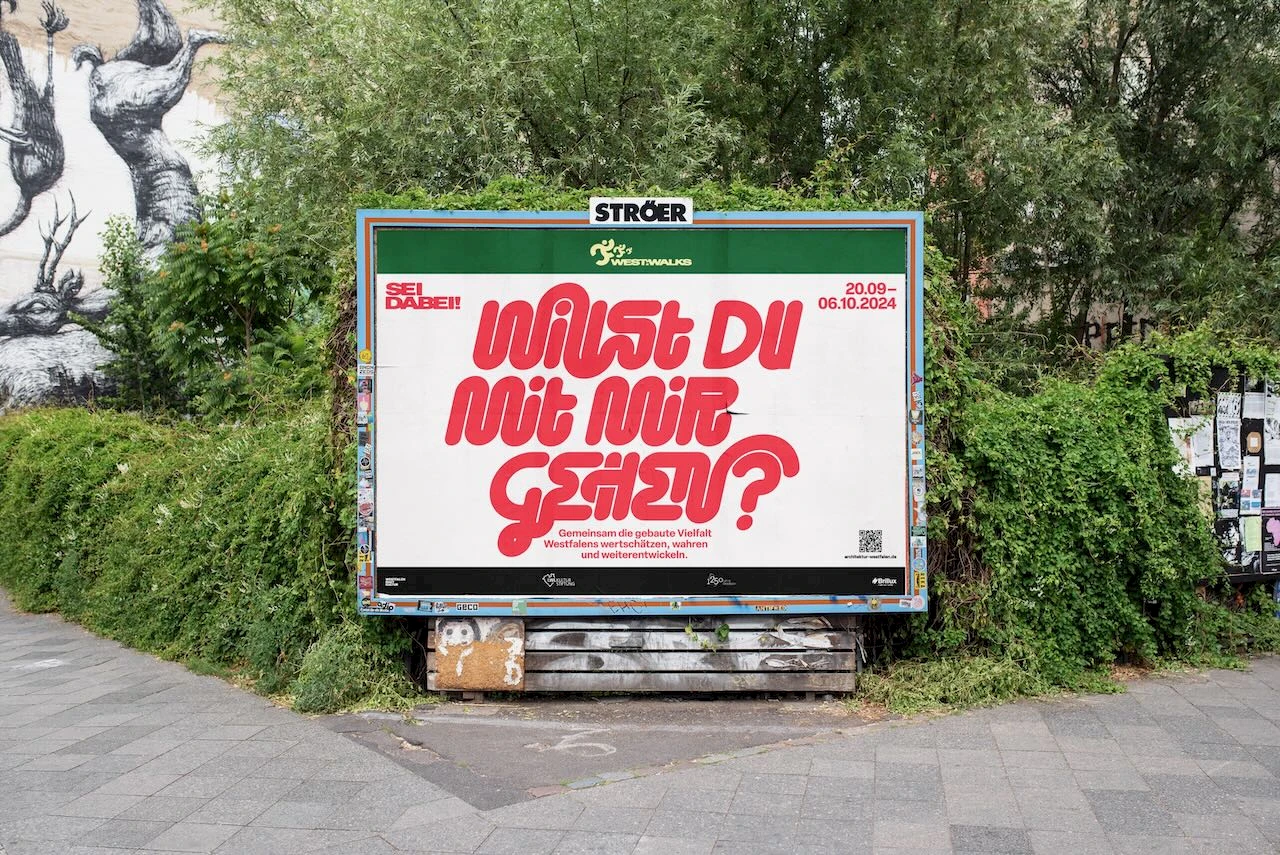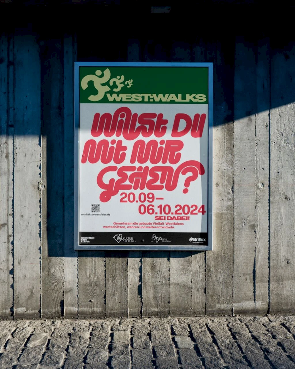 Von der breiten Partizipation, die wir mit FUTURE:WEST aufgesetzt haben, bis zum Schriftbild von "Willst du mit mir gehen?" ist ein Gestaltungsprozess entstanden, der weit mehr ist als nur ein ästhetisches Element: Er ist Ausdruck eines zeitgemäßen Social Designs, das Gemeinwohl, Partizipation, Demokratie und Nachhaltigkeit in den Mittelpunkt stellt. Social Design betont partizipative und demokratische Bottom-up-Prozesse, die auf Teilhabe und Empowerment der Beteiligten ausgerichtet sind. Und genau darum geht es bei den WEST:WALKS. Sie verstärken die Botschaft, dass die gebaute Umwelt ein gemeinsames Gut ist – und dass jeder und jede eingeladen ist, mitzugestalten.